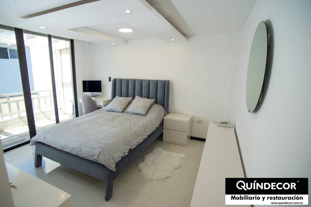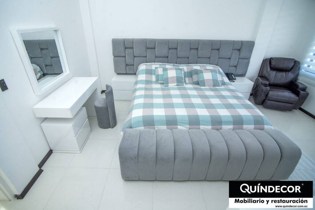 Juegos de dormitorio: camas de 1 plaza, 2 plazas, 2 ½ y 3 plazas, con mesas de noche, cómoda y peinadoras.